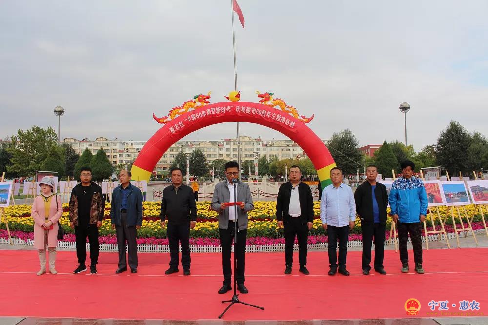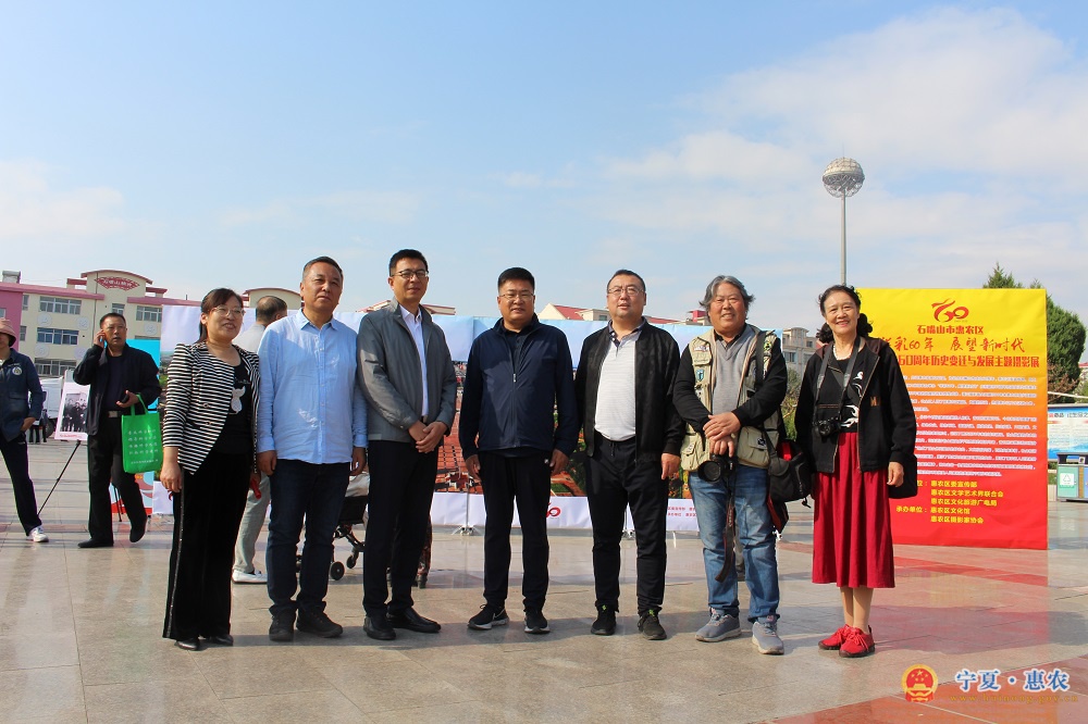 为迎接石嘴山市成立60周年,由惠农区委宣传部、区文联、区文化旅游广电局、区文化馆、区摄影家协会共同举办的“华彩60年 展望新时代”迎接建市60周年历史变迁与发展主题摄影展于9月21 日上午9:00在惠农区文景广场开幕。开幕式由惠农区委常委、宣传部部长张强德致辞。区委副书记李金泉、区人大常委会副主任罗彬、区政协副主席曲显普、市摄影家协会副主席芦有碳、市新媒体协会副会长、监事强幼德、大武口区摄影家协会主席娄广臣等领导参加。